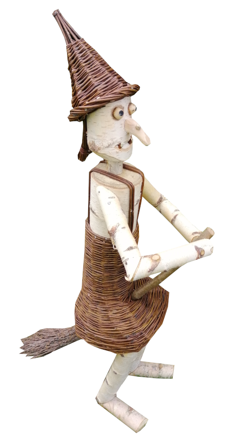 Figurka drewniana z brzozy do ogrodu, dekoracyjna "WIEDŹMA NA MIOTLE" h 103 cm