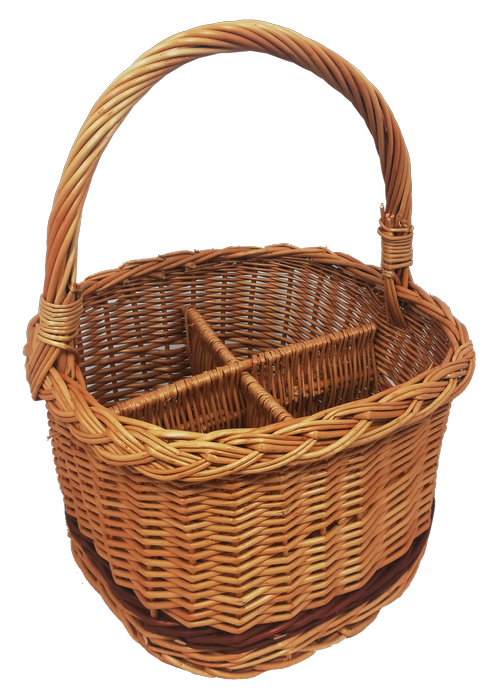 Kosz wiklinowy zakupowy upleciony z polskiej wikliny jest znakomitym rozwiązaniem na zakupy, który będzie nam służył latami. Starannie wypleciony, mocny, możesz być pewien, że twoje zakupy są w nim bezpieczne, nic się nie pogniecie ani nie rozbije. Idealnie nadaje się jako kosz do transportu butelek. Kosz posiada solidna rączkę oraz sześć wysokich komór w które bez trudu pomieszczą się produkty. Duża gama gatunków dostępna w naszym sklepie to gwarancja, iż każdy znajdzie coś odpowiedniego.