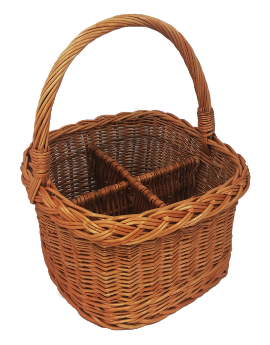 Kosz wiklinowy zakupowy upleciony z polskiej wikliny jest znakomitym rozwiązaniem na zakupy, który będzie nam służył latami. Starannie wypleciony, mocny, możesz być pewien, że twoje zakupy są w nim bezpieczne, nic się nie pogniecie ani nie rozbije. Idealnie nadaje się jako kosz do transportu butelek. Kosz posiada solidna rączkę oraz sześć wysokich komór w które bez trudu pomieszczą się produkty. Duża gama gatunków dostępna w naszym sklepie to gwarancja, iż każdy znajdzie coś odpowiedniego.